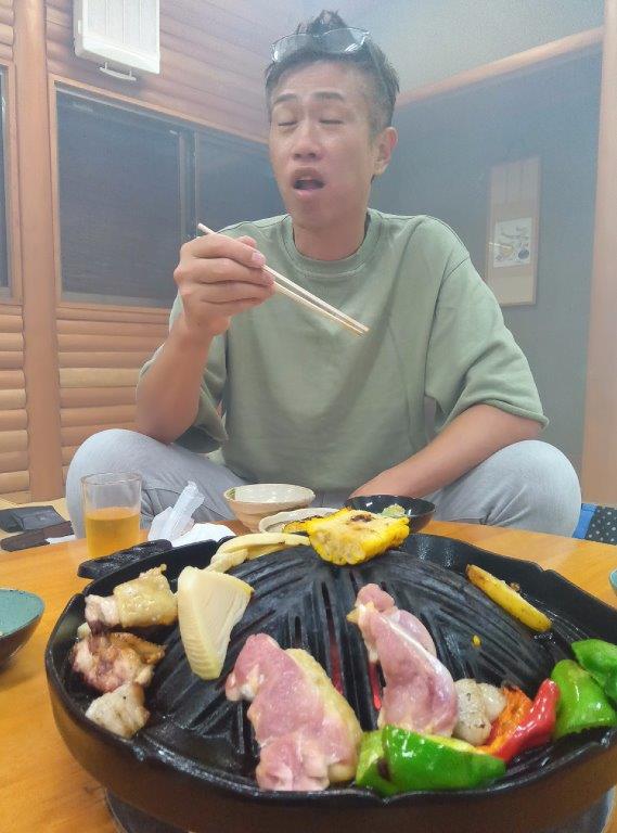 ここでは、柿の他ぶどう狩りや竹の子掘り体験の後、バーベキューやすき焼きをするセットが用意されています。