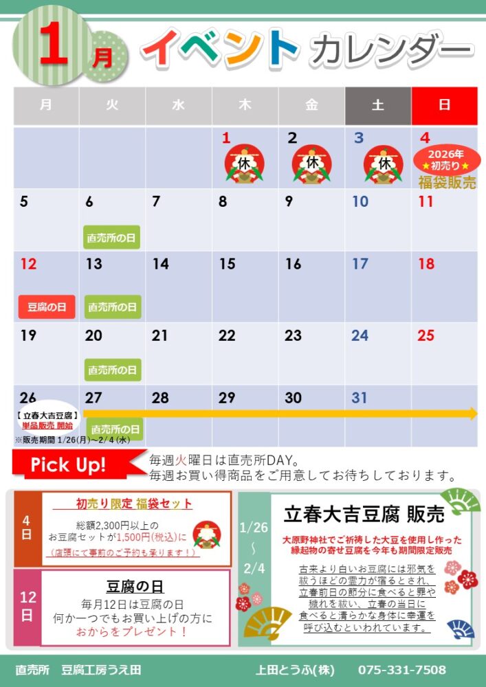 「立春大吉豆腐」を期間限定で販売致します。